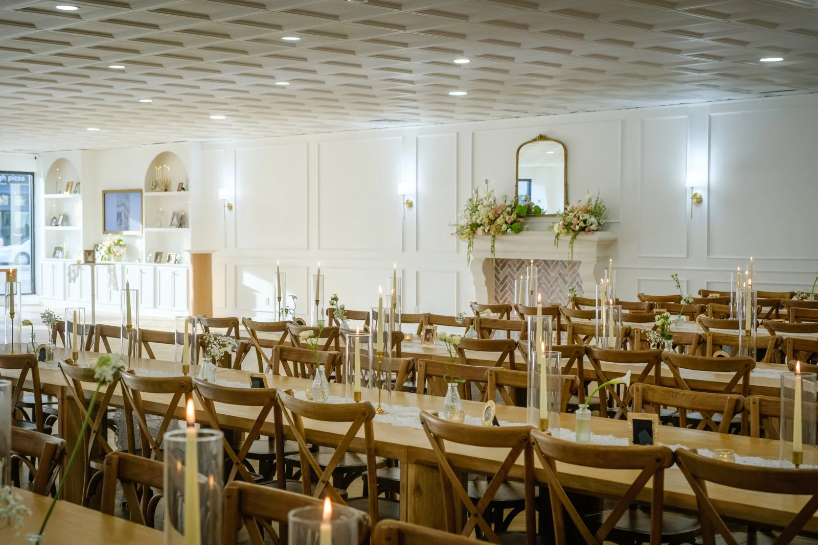 Show up, shoot, and leave with a full evening's worth of fresh portfolio content — across our styled venue spaces, with two couple models and beautifully curated vendor vignettes. You'll rotate freely through the ballroom, bridal suite, serving room, and lounge, capturing whatever catches your eye. With a total of 20 photographers (10 in each 1 hr block) in the building, you'll also get to see how other creatives work — and make the kind of vendor connections that actually lead to referrals. La Fête will tag and feature your work in our post-event social content, and participating photographers in good standing are added to our preferred vendor directory — shared directly with every couple who inquires with us.